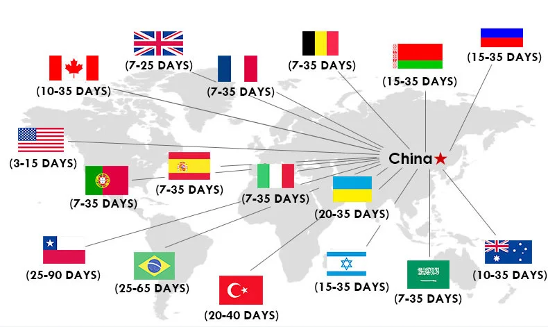 3)Before ordering please contact us to confirm your preferred shipment method. Normally, it takes 20-50 business days for arrival by Air Mail, and takes 3-10 business days by Express.