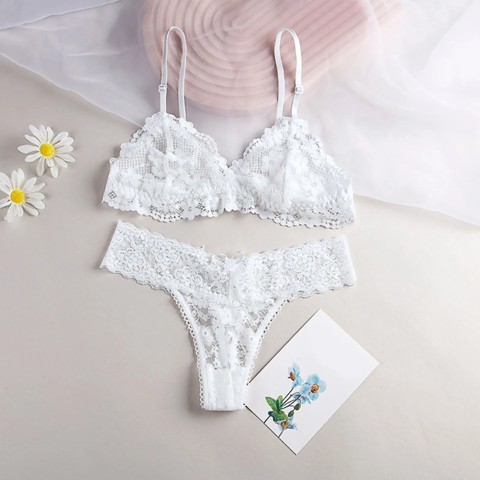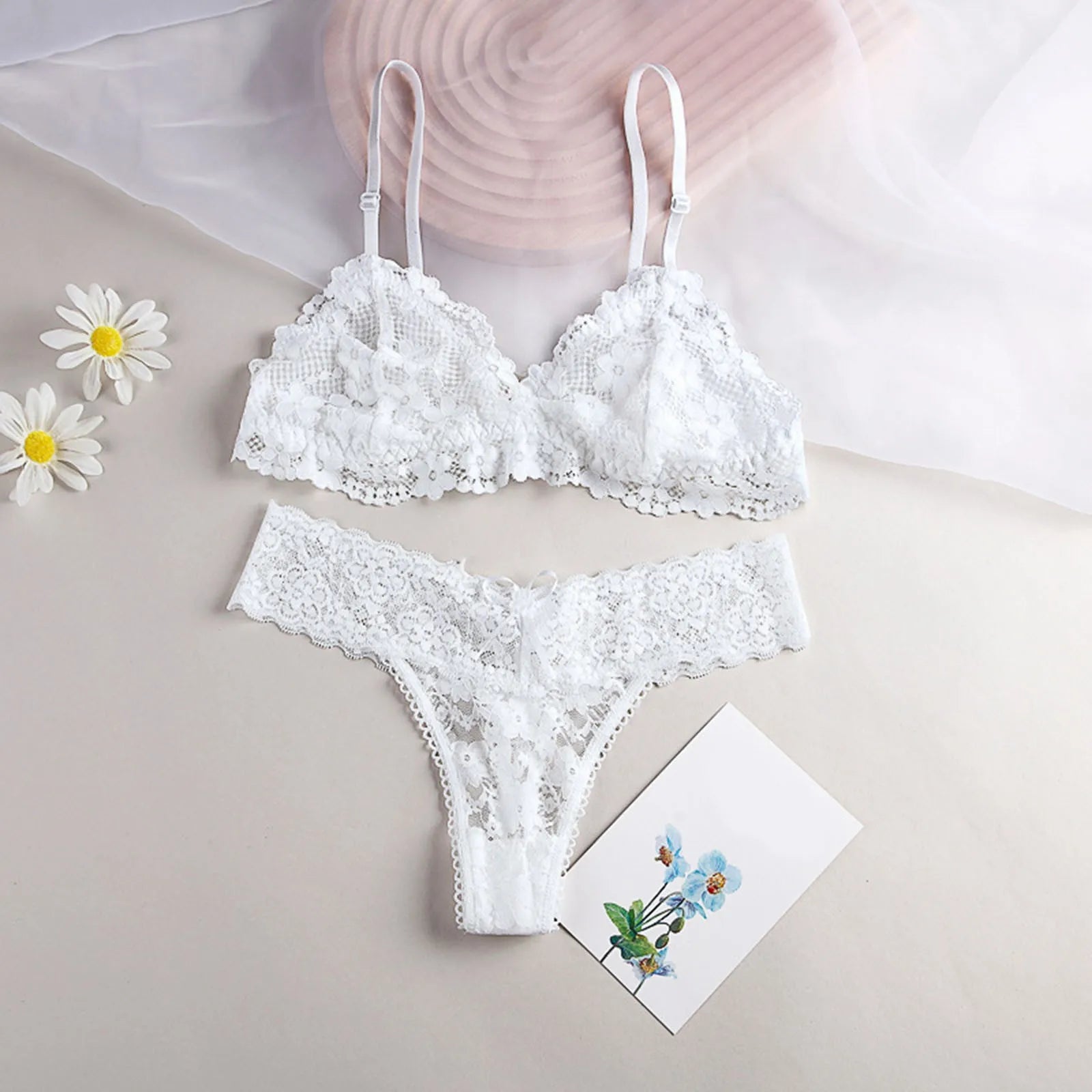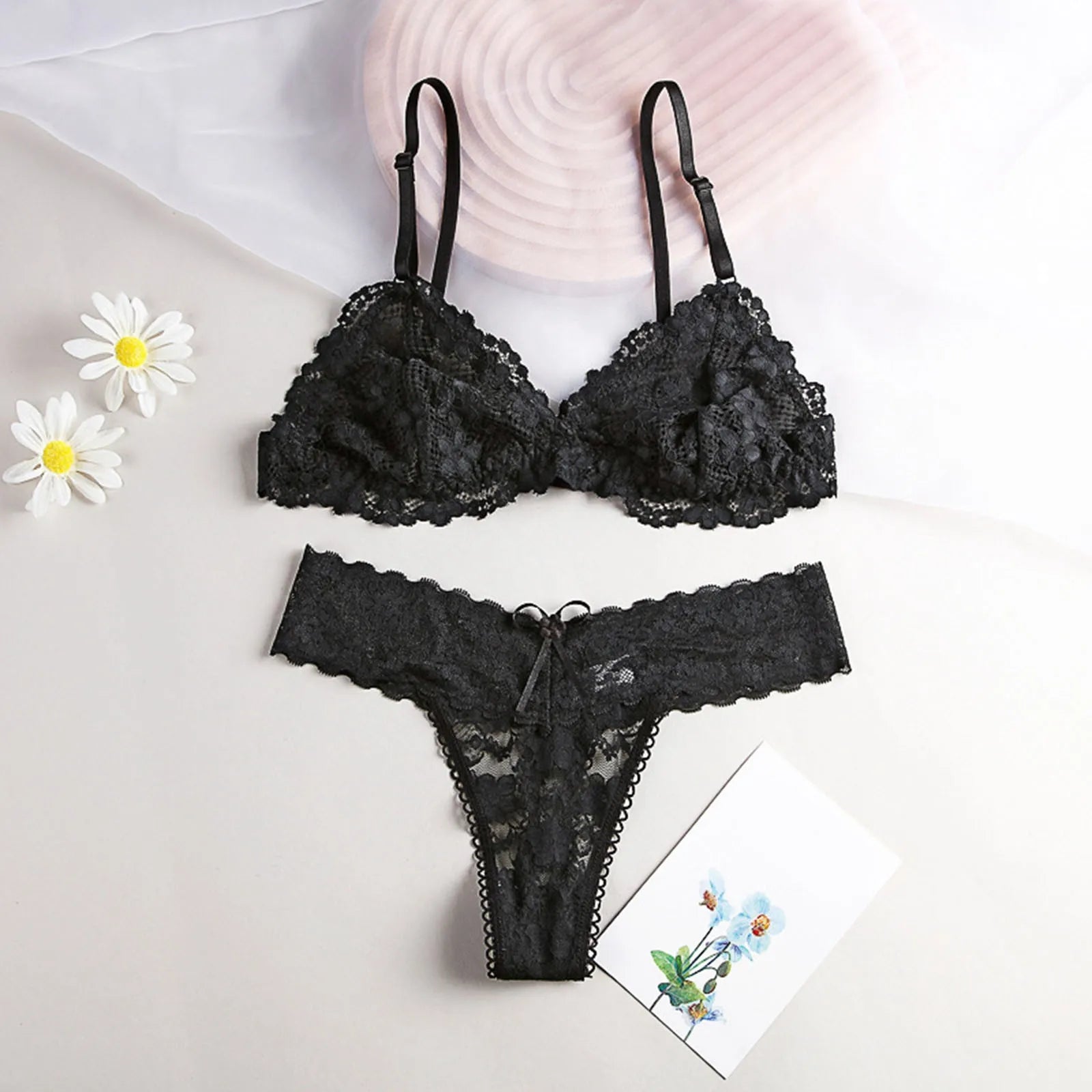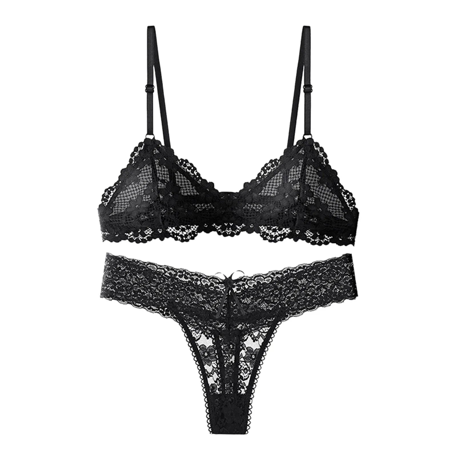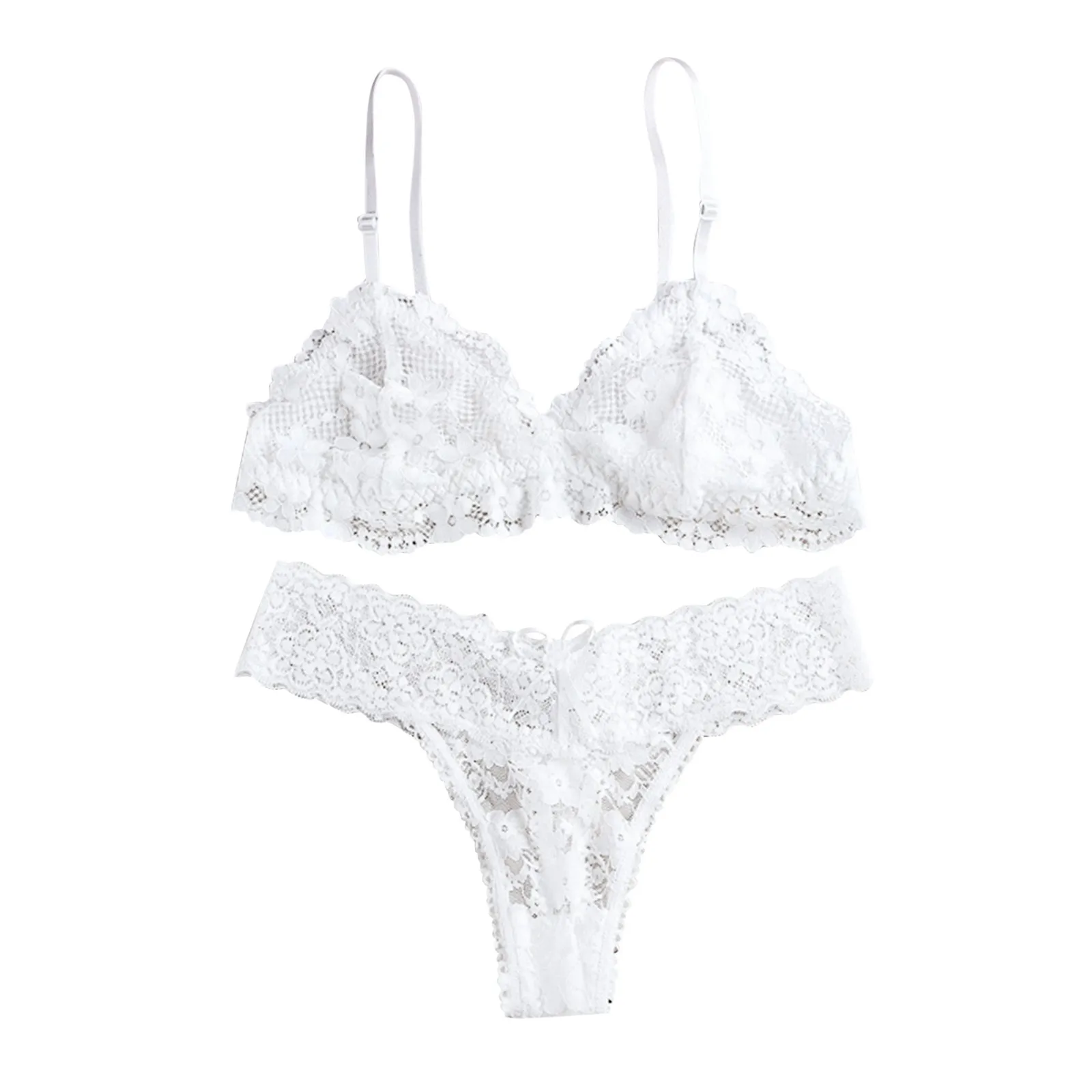 Women V Neck Sexy Female Comfortable Underwear Vest Floral Lace Lingerie Lace Backless Lanyard Underwear Suit Lace Underwear