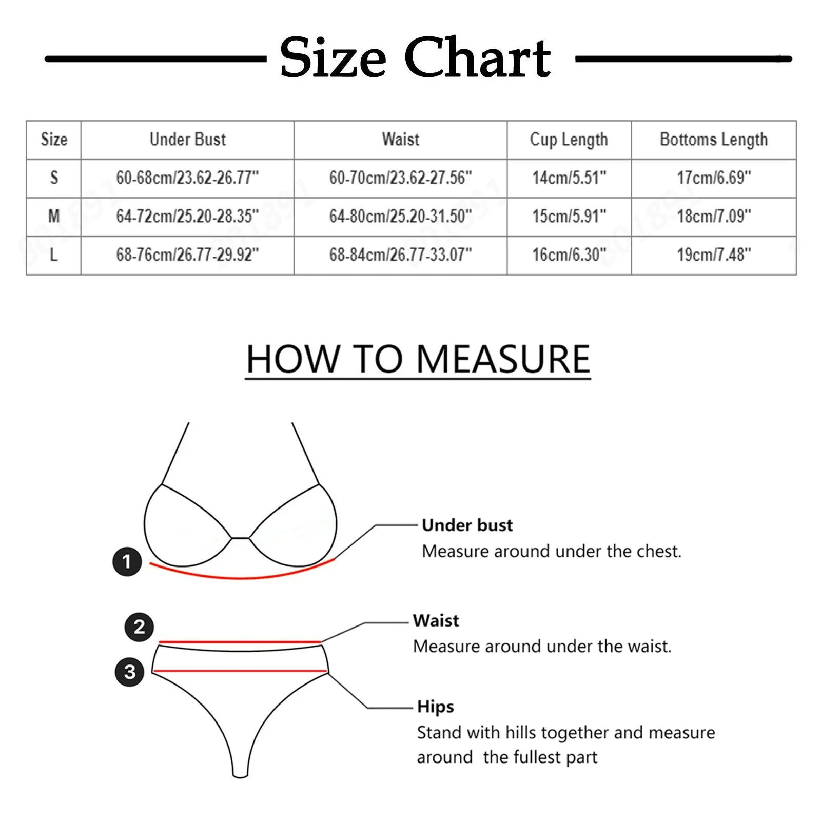 | Size:S | Under Bust:60-68cm/23.62-26.77'' | Waist:60-70cm/23.62-27.56'' | Cup Length:14cm/5.51'' | Bottoms Length:17cm/6.69'' |
